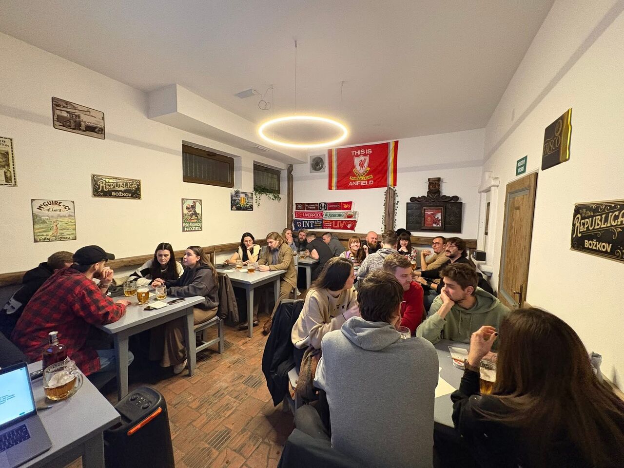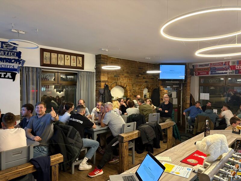 Jsme místem, kde to žije i mimo sklenici — vysíláme sportovní přenosy live, takže pokud fandíš třeba Kometě, můžeš každý zápas sledovat u nás v té nejlepší atmosféře s ostatními fanoušky.